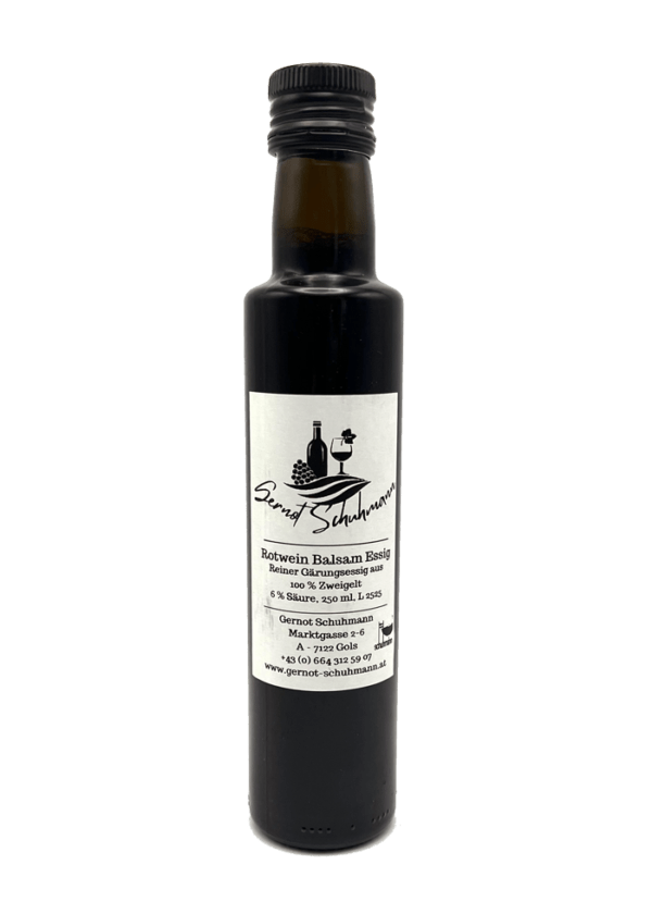 Rotwein Balsam Essig, Reiner Gärungsessig aus 100 % Zweigelt, 6 % Säure, 250 ml, L 2525
